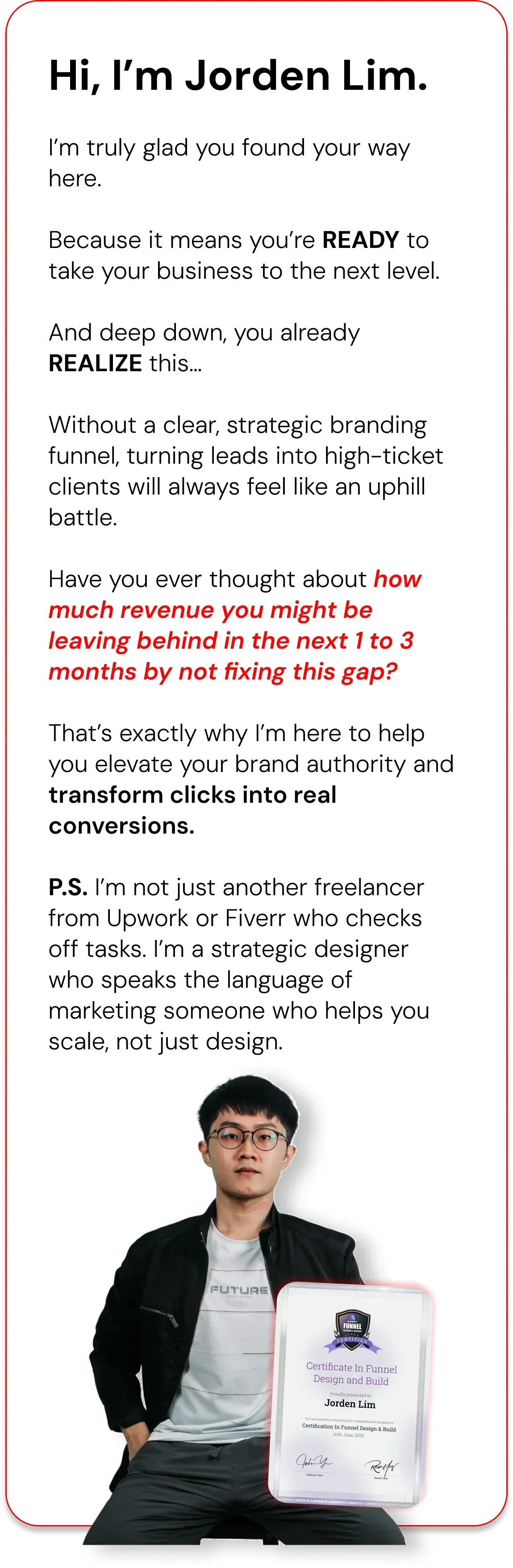 "Jorden made it so easy for me... It's clear, it's concise, and it urges somebody to book a call."
